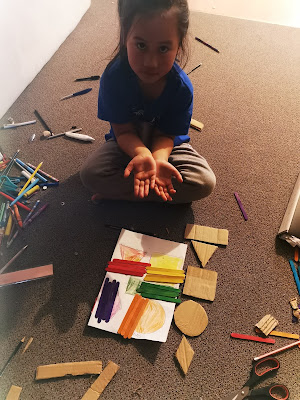 Dothan has been doing a lot of maths thinking and learning this week. Here she is working on identifying shapes. I like how she matched the colours of the sticks to the shapes.